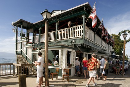 Tourists eating at a Cheese Burger In Paradise restaurant in Lahaina, Maui, Hawaii. Cheeseburger In Paradise Restaurant Lahaina. Cheeseburger In Paradise.