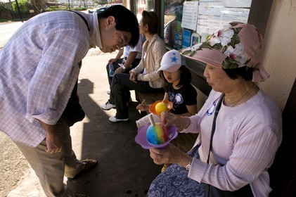 Ice cream shop Matsumoto's Shave Ice. Haleiwa. O'ahu. Hawaii. Flavored Shave Ice from Matsumoto's Grocery Store on the North Shore of Oahu, Hawaii. Shave ice is a local specialty found throughout the islands