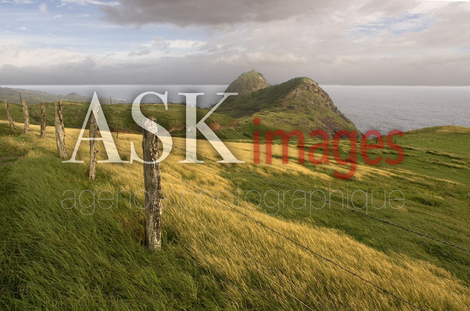 Landscape between Kahakuloa and Honokohau. Maui. Hawaii. Kahakuloa head and the smaller Pu'u Kahlui-anapa as seen from the west Maui loop road. East of Kahakuloa Village in West Maui