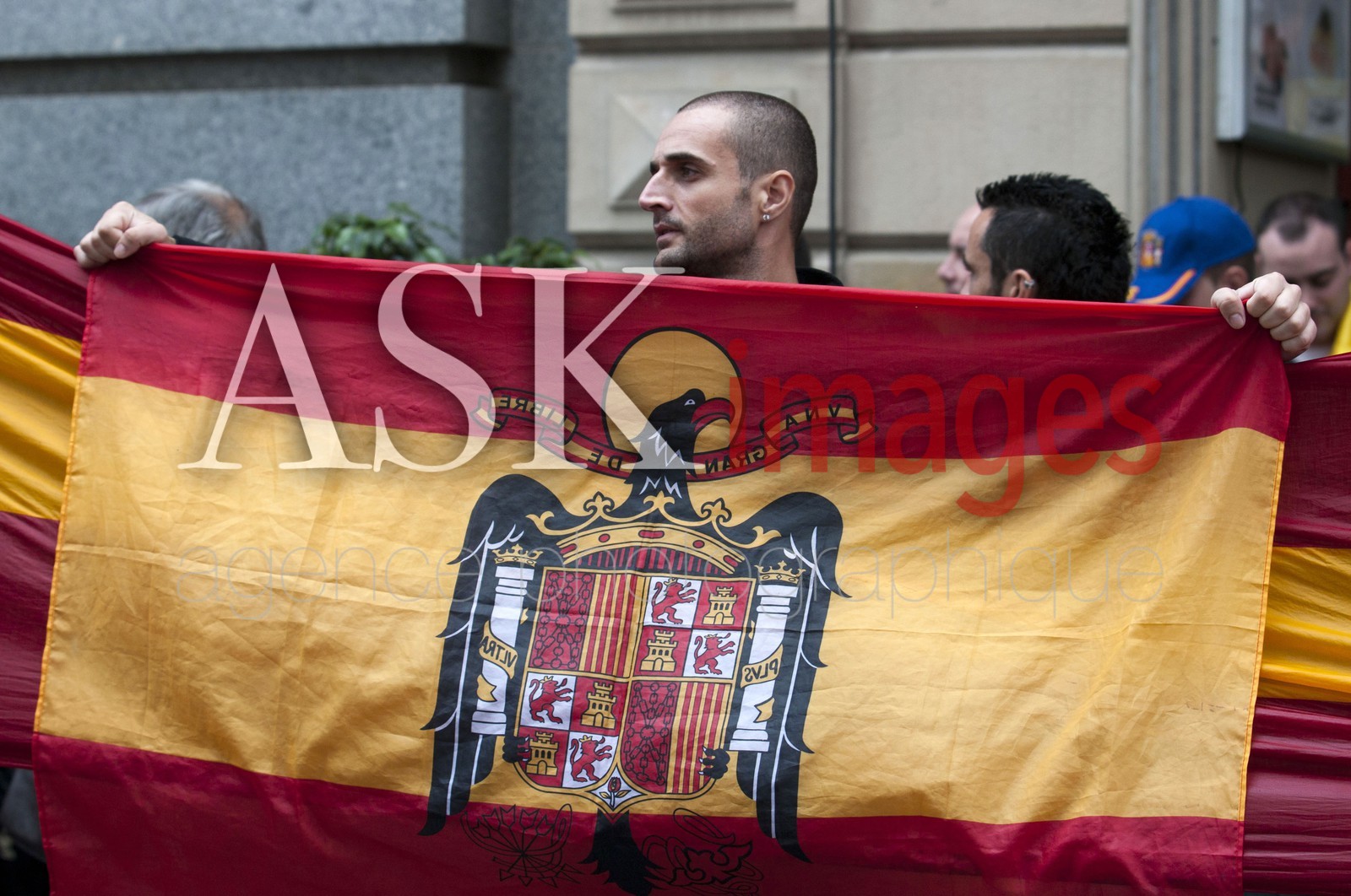 | Description | Barcelona, Spain. 12th Oct, 2014. Demonstrators doing the fascist salute during the Spanish Ultra Nationalism speech. Over 200 spanish ultra nationalist civilians has celebrated in Barcelona, the annual commemoration of October 12th as the Spanish National Day. Hispanic Day is marked by the crisis stalking Spain and the growing demand for independence by the Catalan population. Some thousands of people demonstrated for the union of the Spanish territory. |