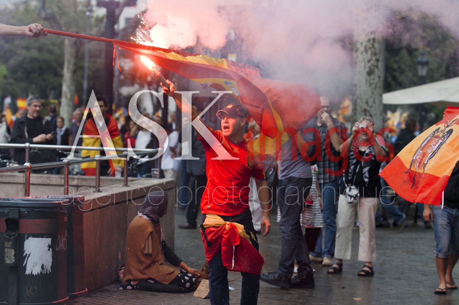 | Description | Barcelona, Spain. 12th Oct, 2014. Demonstrators doing the fascist salute during the Spanish Ultra Nationalism speech. Over 200 spanish ultra nationalist civilians has celebrated in Barcelona, the annual commemoration of October 12th as the Spanish National Day. Hispanic Day is marked by the crisis stalking Spain and the growing demand for independence by the Catalan population. Some thousands of people demonstrated for the union of the Spanish territory. |